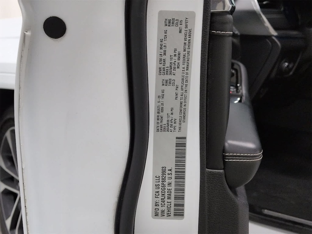 Vin Number: 1C4RJKDG6P8829903