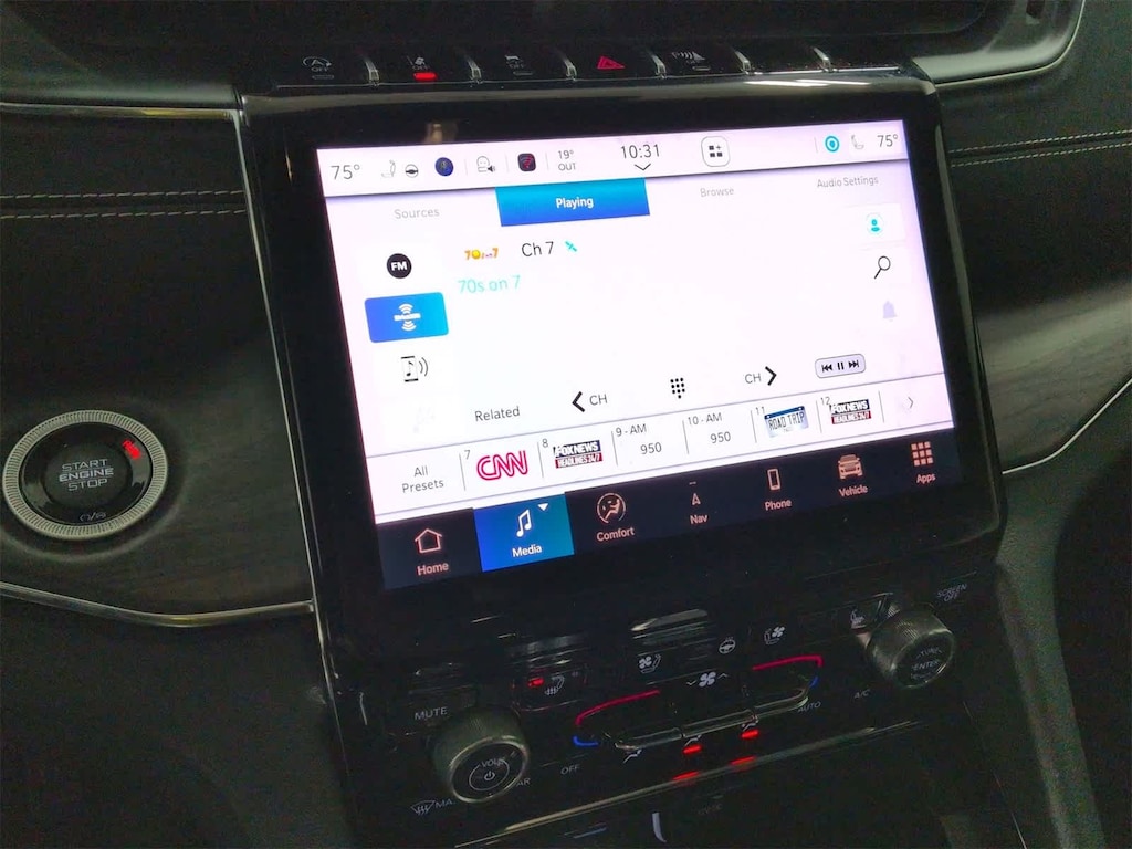 Our Overland cabin brings you bold comfort with heated/ventilated leather front and heated second-row seats, a flexible third row, a heated TechnoLeather power steering wheel, dual-zone automatic climate control, a wrapped instrument panel, keyless access/ignition, and remote start. Digital advantages include a 10.25-inch driver display, a 10.1-inch touchscreen, full-color navigation, WiFi compatibility, wireless Android Autoî/Apple CarPlayî, Bluetoothî, voice recognition, and a 19-speaker high performance sound system with a 950 watt amplifier.