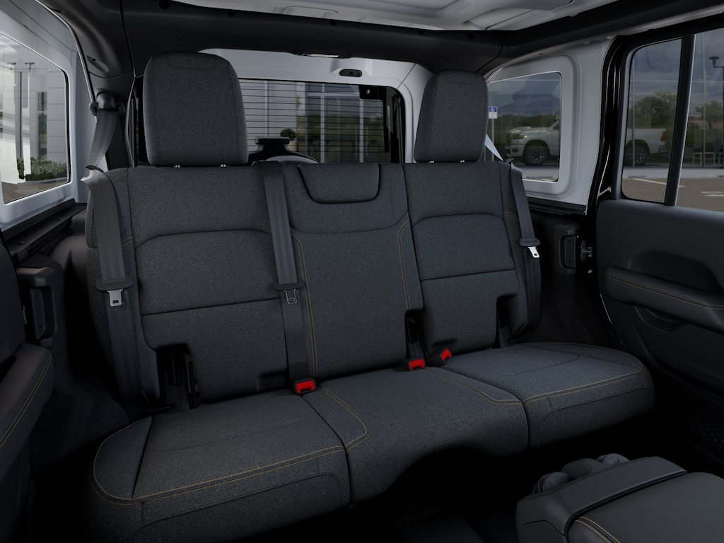 Upscale details, including heated front seats, a heated steering wheel, automatic climate control, remote start, keyless access, pushbutton ignition, and 12V and 115V power outlets, add comfort to our Sahara cabin. Our Wrangler features a 12.3-inch touchscreen, a driver information display, Apple CarPlay, Android Auto, Bluetooth, an eight-speaker audio system, Off-Road Pages, and an available WiFi hotspot.