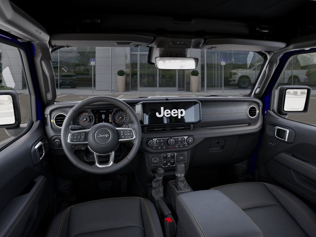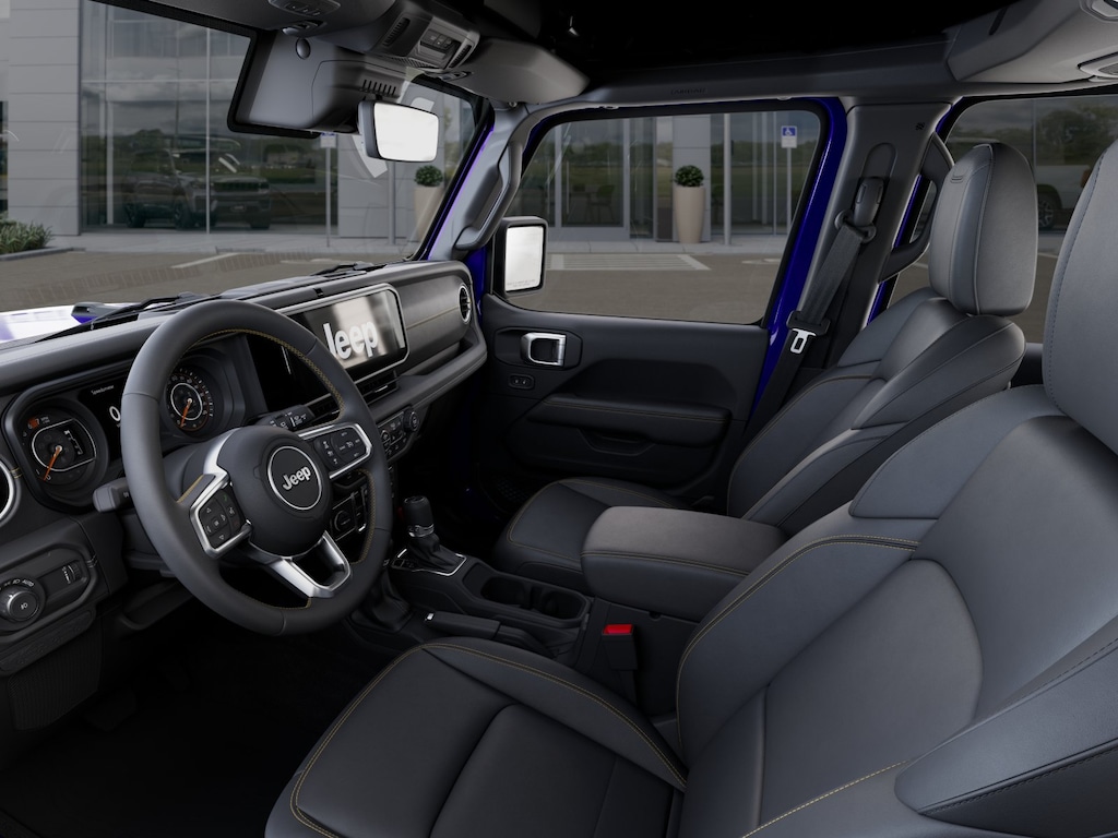 Upscale details, including the Popular Equipment Packages heated McKinley-trimmed heated front seats, a heated-wrapped steering wheel, automatic climate control, remote start, keyless access, push-button ignition, and 12V/115V power outlets, enhance the comfort of our Sahara cabin. Our Wrangler also impresses in the infotainment department, thanks to a 12.3-inch touchscreen, a 7-inch driver display, WiFi compatibility, Apple CarPlay, Android Auto, Bluetooth, Alpine audio, and the trail-friendly tech benefits of Off-Road Info Pages. Its a comfortable cockpit for taking command!