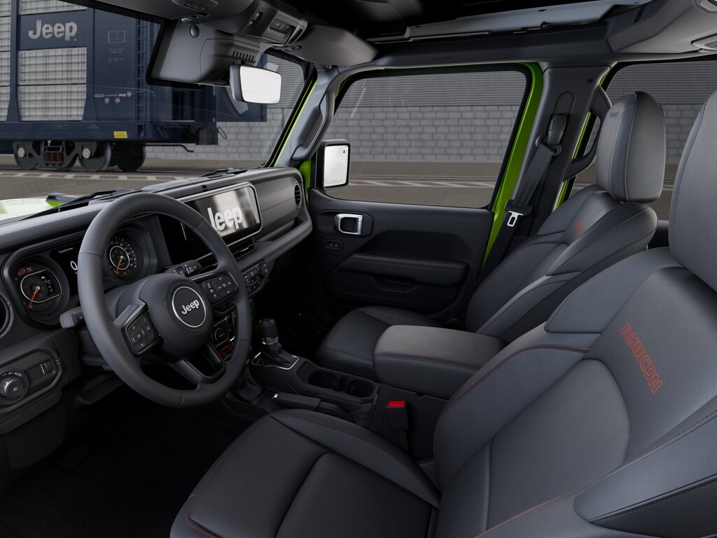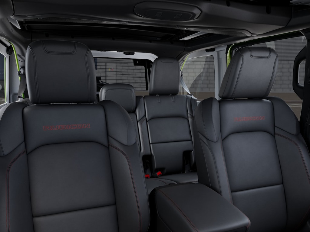 When you get into our Rubicon X cabin, youre comfortably in command. It pampers you with heated Nappa leather power front seats, a heated-wrapped steering wheel, automatic climate control, keyless entry/ignition, and the convenience of 12V/115V power outlets. Digital benefits begin with a 12.3-inch touchscreen, a 7-inch driver display, WiFi compatibility, Android Auto, Apple CarPlay, Bluetooth, Alpine audio, and Off-Road Info Pages.