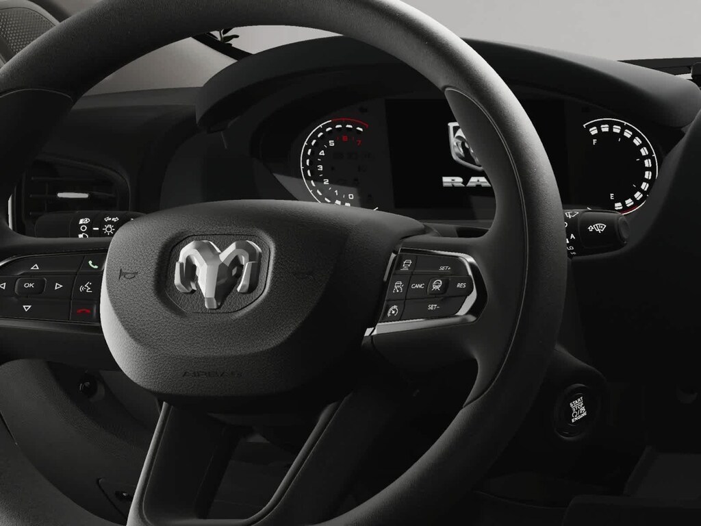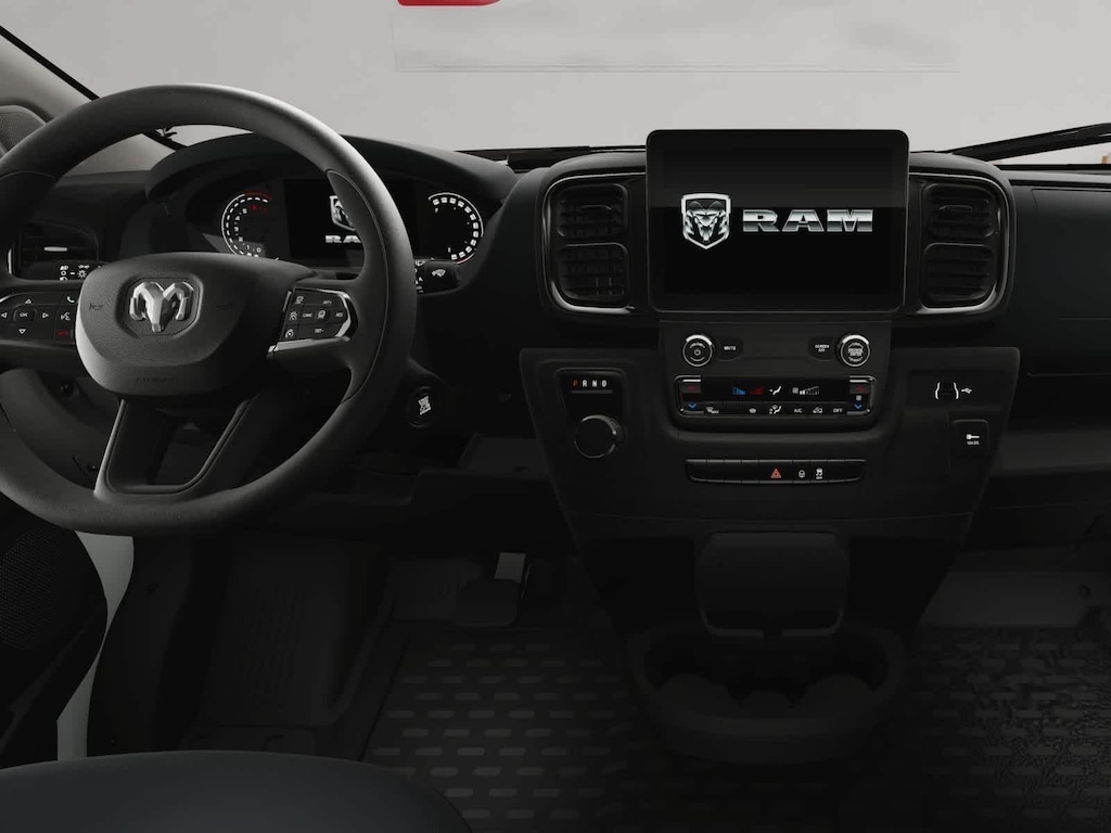 Our ProMaster cabin is engineered to have excellent comfort and convenience with supportive cloth seats, a multifunction steering wheel, air conditioning, power accessories, keyless access, pushbutton ignition, and a 3.5-inch driver display. The fantastically functional infotainment system bundles a 7-inch touchscreen, full-color navigation, WiFi compatibility, Apple CarPlay, Android Auto, Bluetooth, voice command, and four-speaker audio for easy connectivity. The roomy rear is easy to upfit, too!