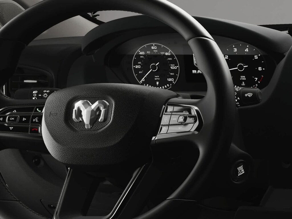 Taking charge of our Tradesman cabin can help make your days more productive. Its comfortable and convenient, highlighted by supportive cloth seats, a multifunction steering wheel, air conditioning, keyless access/ignition, power accessories, and a 3.5-inch driver display. The full-function infotainment system features a 7-inch touchscreen, WiFi compatibility, Apple CarPlay, Android Auto, Bluetooth, voice command, and a four-speaker audio system. Additionally, youll find ample space in the back to help meet your needs.