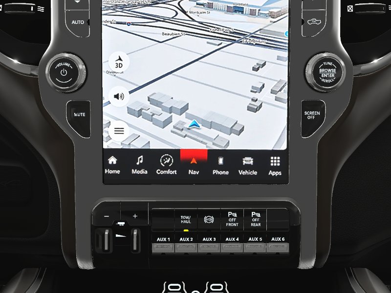 12 Touchscreen Display, 17 Speaker harman/kardon Premium Sound, 18 x 8 Polished Aluminum Wheels, 2nd Row In Floor Storage Bins, Alexa Built-In, Apple CarPlay, Auto Adjust In Reverse Exterior Mirrors, Auto Dimming Exterior Passenger Mirror, Auto High Beam Headlamp Control, Auto Power-Folding Mirrors, Auto-Dimming Exterior Mirrors, Bed Utility Group, Blind Spot & Cross Path Detection, Center Hub, Chrome Exterior Mirrors, Connected Travel & Traffic Services, Connectivity - US/Canada, CTR Stop Lamp w/Cargo View Camera, Disassociated Touchscreen Display, Exterior Mirrors Courtesy Lamps, Exterior Mirrors w/Heating Element, Exterior Mirrors w/Memory, Exterior Mirrors w/Supplemental Signals, Foam Bottle Insert (Door Trim Panel), Forward & Reverse Utility Lights, Front LED Fog Lamps, Google Android Auto, GPS Antenna Input, GPS Navigation, HD Radio, Heated Second Row Seats, Heavy Duty Snow Plow Prep Group, Integrated Voice Command w/Bluetooth, Laramie Level B Equipment Group, LED Bed Lighting, LED Reflector Headlamps, LED Tail Lamps, Mirror Running Lights, MOPAR Deployable Bed Step, MOPAR Spray In Bedliner, Navigation System, Off-Road Information Pages, ParkSense Front/Rear Park Assist System, Power Adjust Mirrors, Power Adjustable Pedals w/Memory, Power Heat Fold Memory Telescopic Mirrors, Power Sunroof, Power Telescoping Mirrors, Power-Adjustable Convex Aux Mirrors, Quick Order Package 21H Laramie, Radio: Uconnect 5 Nav w/12.0 Display, Rain Sensitive Windshield Wipers, Rear Power Sliding Window, Rear Window Defroster, Remote Tailgate Release, Selectable Tire Fill Alert, SiriusXM w/360L, Surround View Camera System, Towing Technology Group, Trailer Reverse Guidance, Trailer Tow Pages.